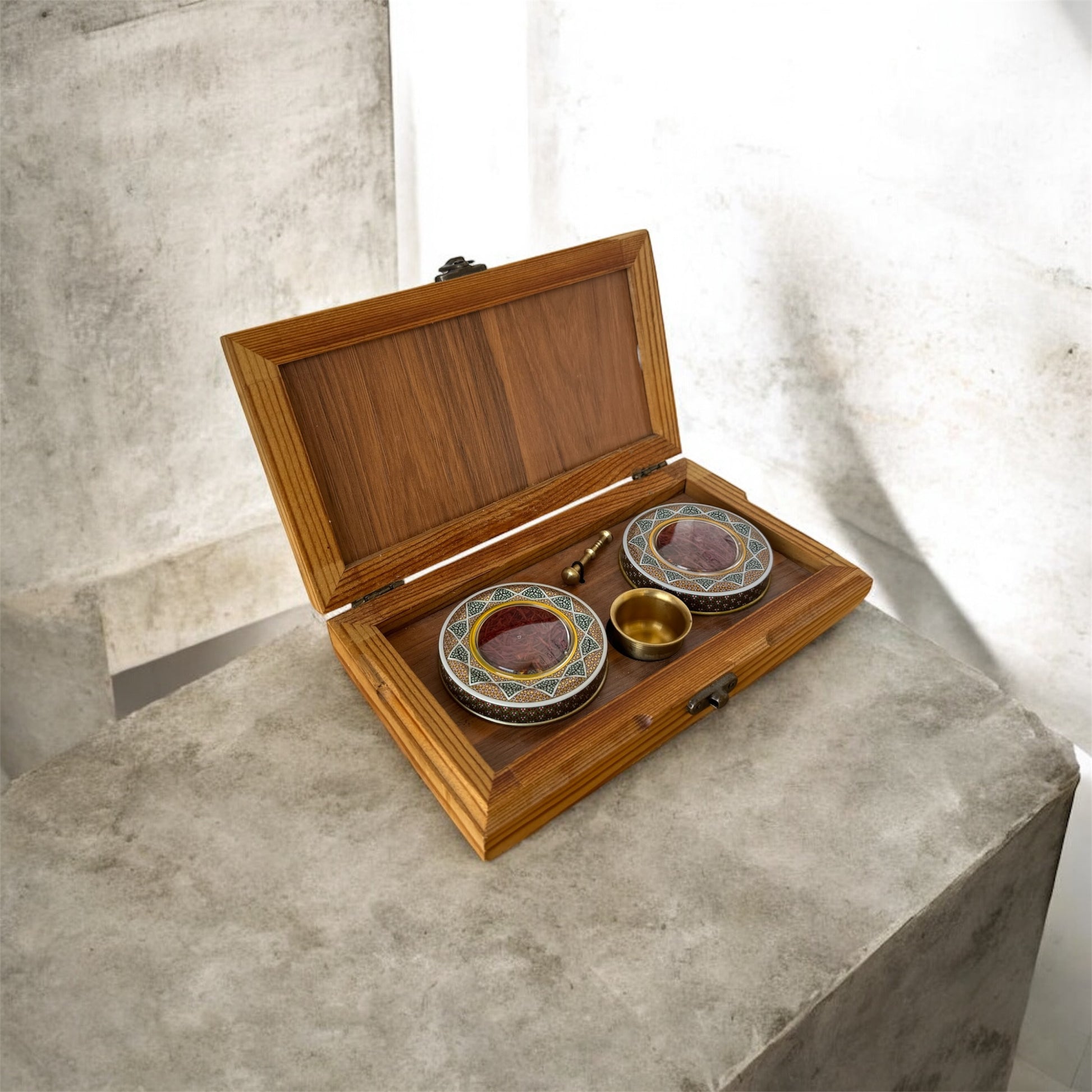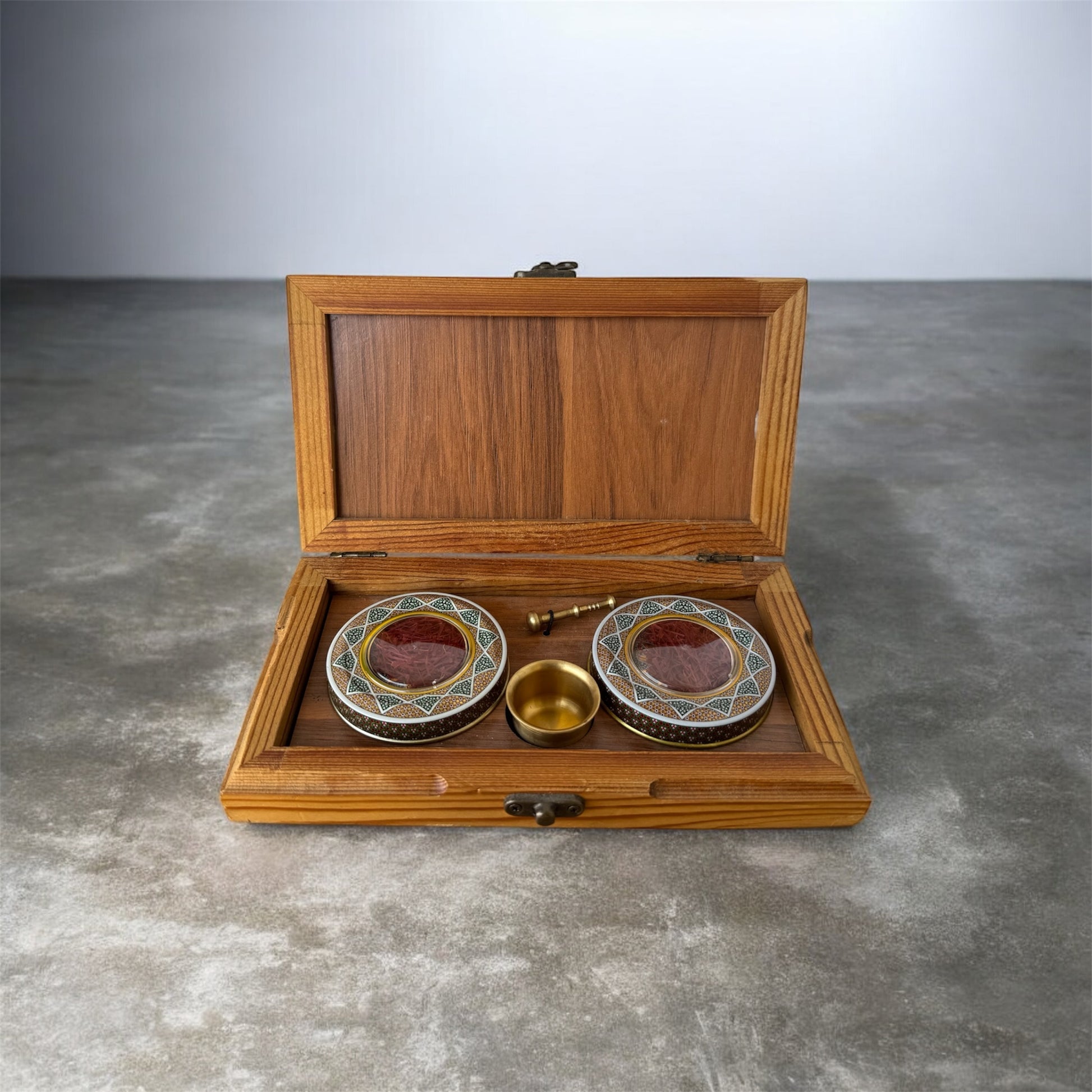 Mohammad Saffron Super Negin 2 × 1 g Gift Box with Grinder – Wooden Box - محمد زعفران سوبر نقي 1×2غرام علبة هدايا