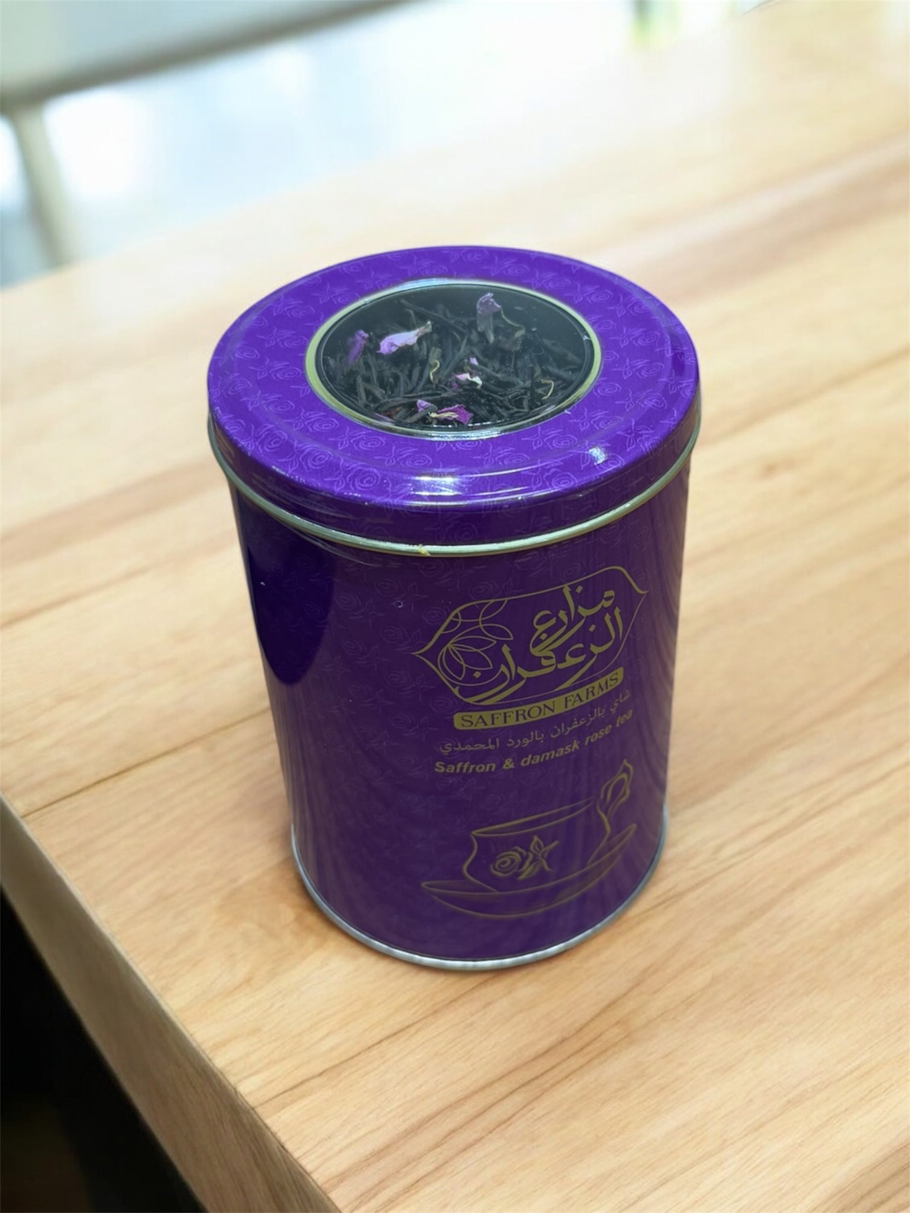 شاي زعفران عالي الجودة مصنوع في إيطاليا، مقدم في عبوة حديد فاخرة. يتميز برائحته الهادئة ويساعد على الاسترخاء وتحقيق التوازن الذهني. مثالي لأوقات الهدوء والراحة